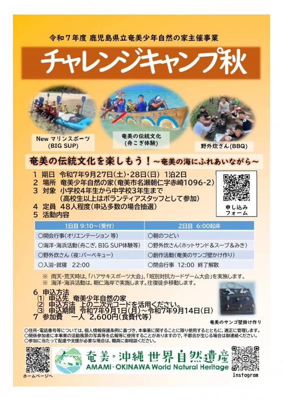 ■主催:奄美少年自然の家(MAP)TEL:0997-53-1032