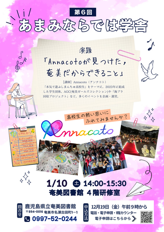 ■申し込み・問い合わせ:12/19から受付 電子申請、または 県立奄美図書館 1Fカウンター (0997-52-0244)