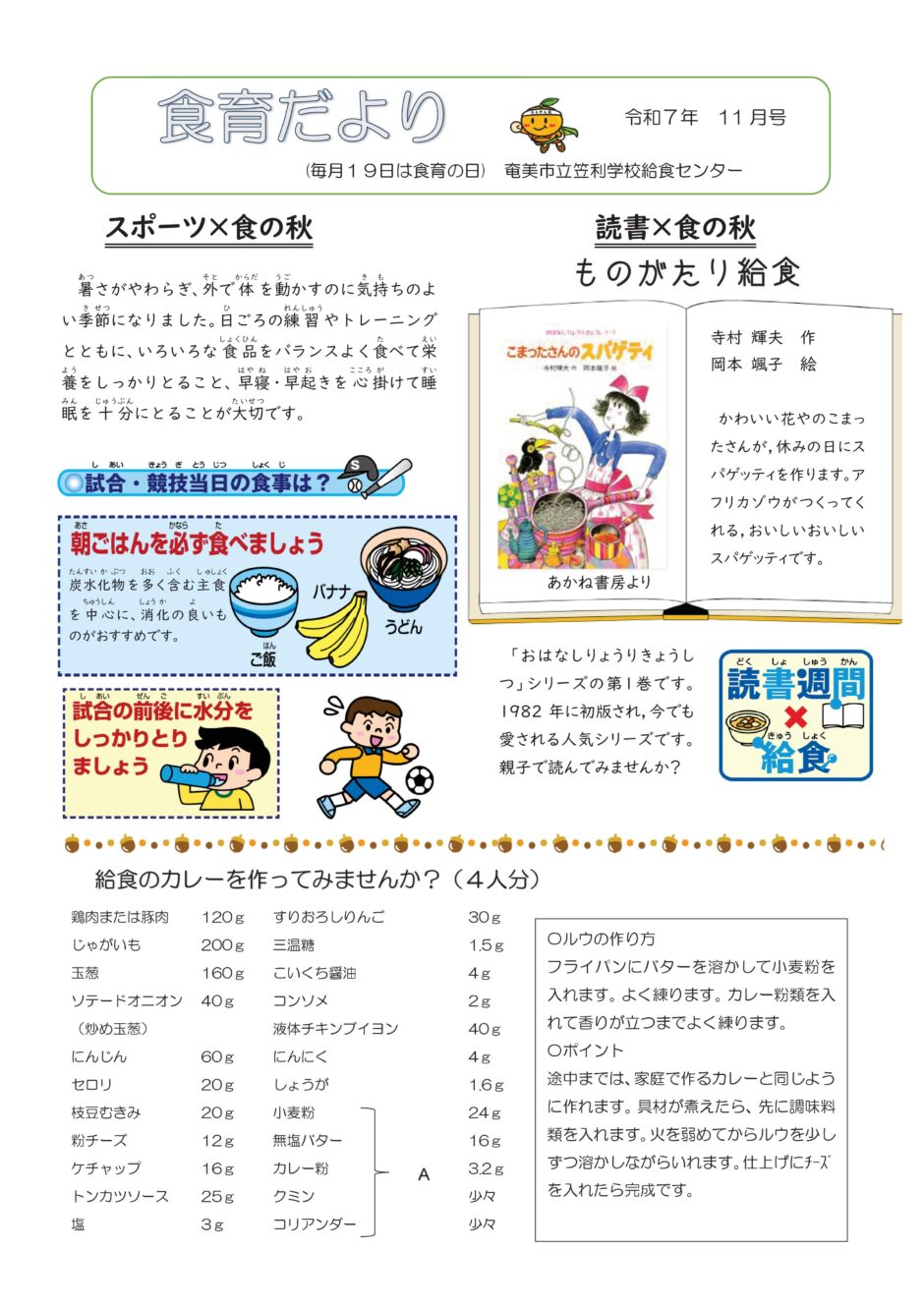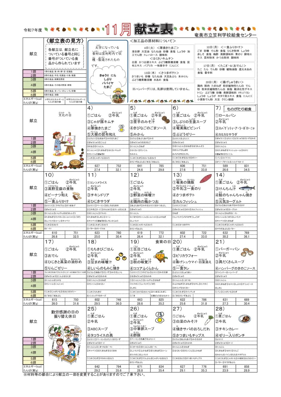奄美市立学校給食センターより11月のA献立と食育だよりの配信です。