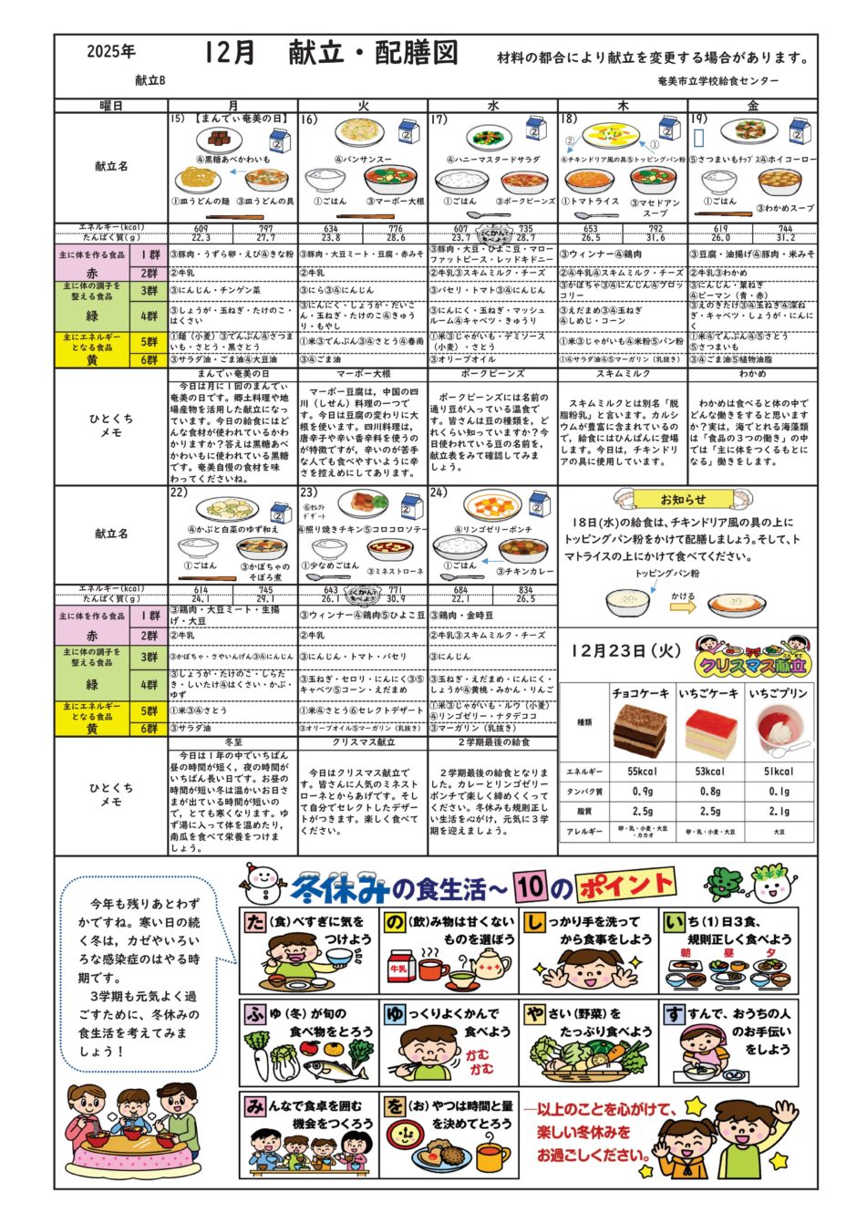 HOME  > 小学校・中学校そして卒業後 > 給食センターからのお知らせ  > 2025年12月 B献立・給食だより